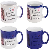 - Druckmotiv erscheint, Tassenfarben: Blau oder Schwarz, Handspülung